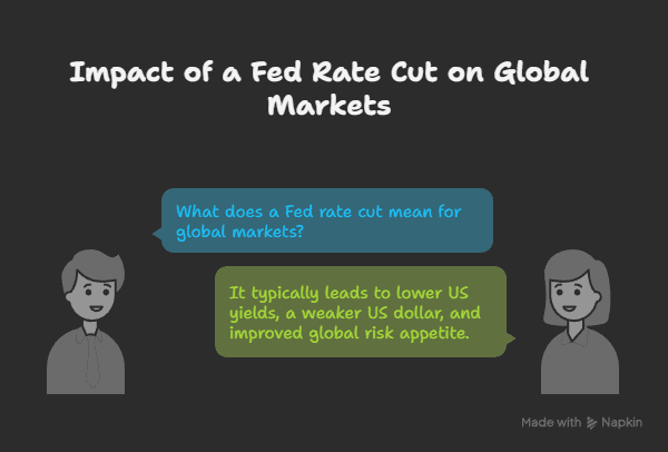 Markets reacted calmly because the cut was widely expected. Futures had already priced in an 88% chance of a 25 bps reduction, so traders weren’t surprised. You could see this in the limited market moves the S&P 500 rose just 0.7%, the Nasdaq gained 0.3%. These moderate gains show that most of the news was already factored into prices.