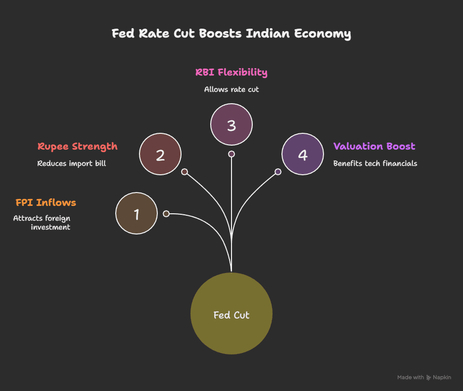 US rate cuts typically support higher global tech valuations. Indian IT companies benefit from: