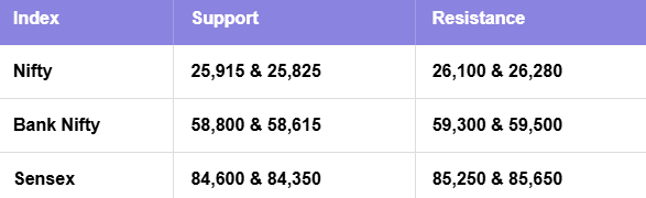Looking ahead, the tone remains constructive. If Nifty can hold above 25,915 and push through 26,100, the index could be gearing up for a fresh all-time high.