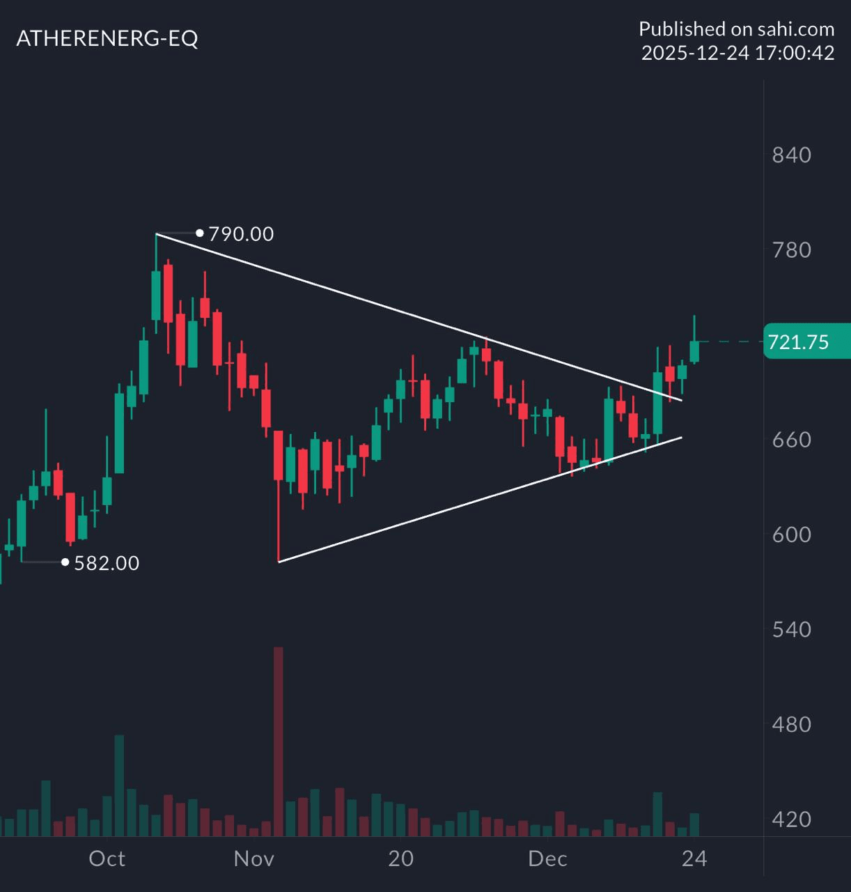 | ATHERENERG | +2.18% | Contracting pattern breakout with rising volumes |