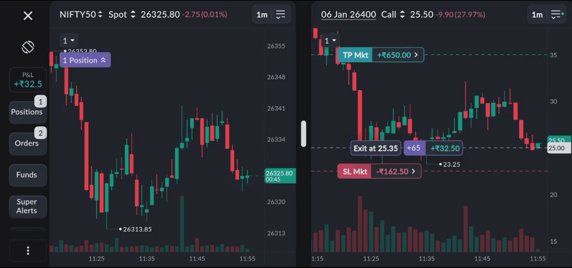 Scalper 1.0 introduced a powerful shift in the ability to view Index + Call/Put charts together, so scalpers could finally stop reading the market one leg at a time.