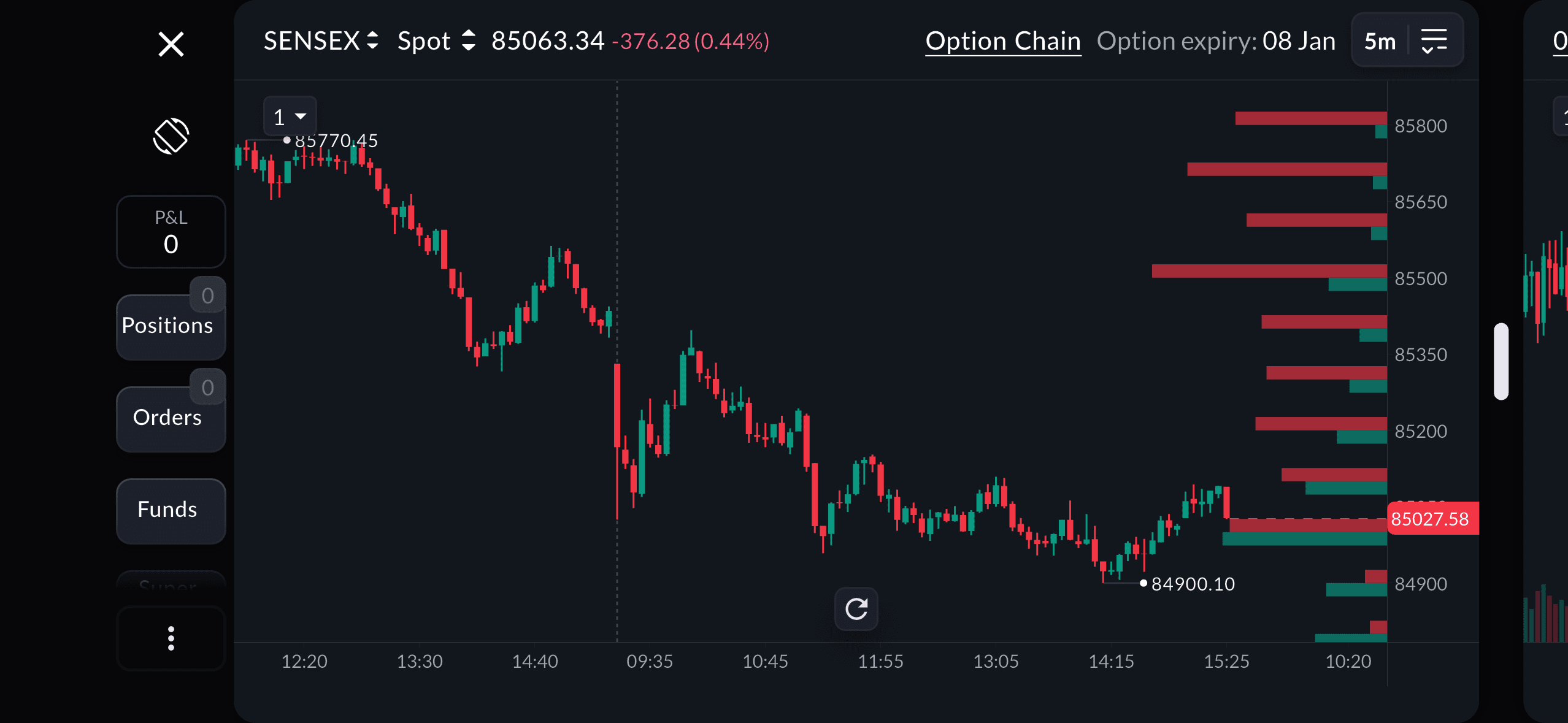Scalper 2.0 brings the live Option Chain directly inside Scalper, letting you choose your preferred expiry and view strike-wise data such as OI, OI change, and option Greeks - all within the same screen where you place your trades.